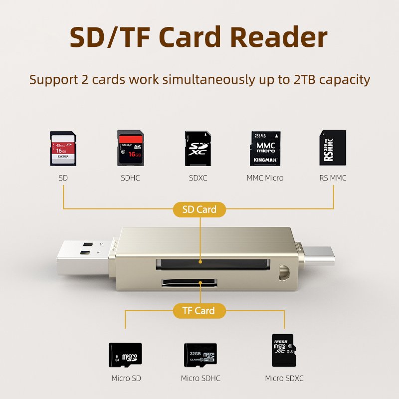 Card reader της Cabletime, σε μέγεθος USB flash, με 2 υποδοχές στις οποίες μπορείτε να τοποθετήσετε μια SD και μια micro SD κάρτα μνήμης.