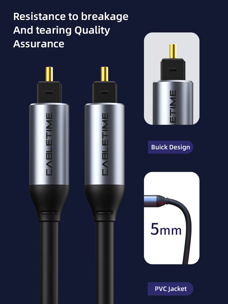 Καλώδιο toslink της Cabletime για καθαρή και υψηλής ποιότητας μεταφορά σήματος ήχου. Ιδανικό για τη σύνδεση συσκευών όπως gaming κονσόλες, HiFi συστήματα, home cinema, Blu-ray players, ενισχυτές ήχου κλπ.