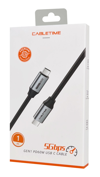 CABLETIME καλώδιο USB-C CMCM60, 60W PD, 5Gbps, 4K, 1m, μαύρο