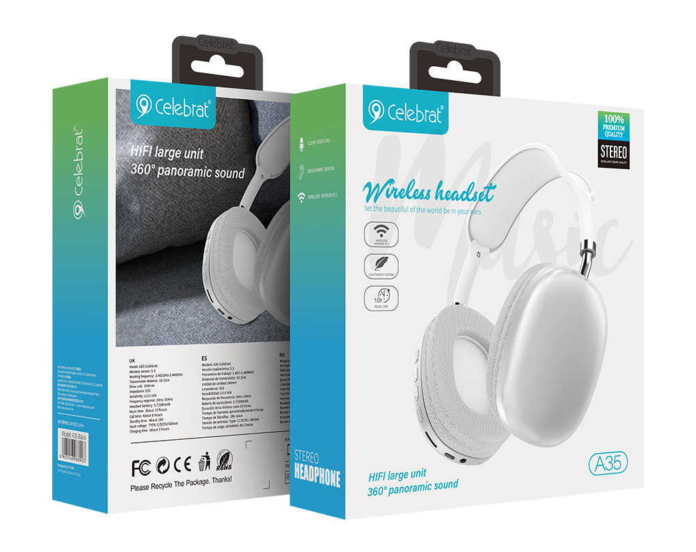 CELEBRAT headphones A35, ασύρματα & ενσύρματα, micro SD, 40mm, 200mAh, λευκά