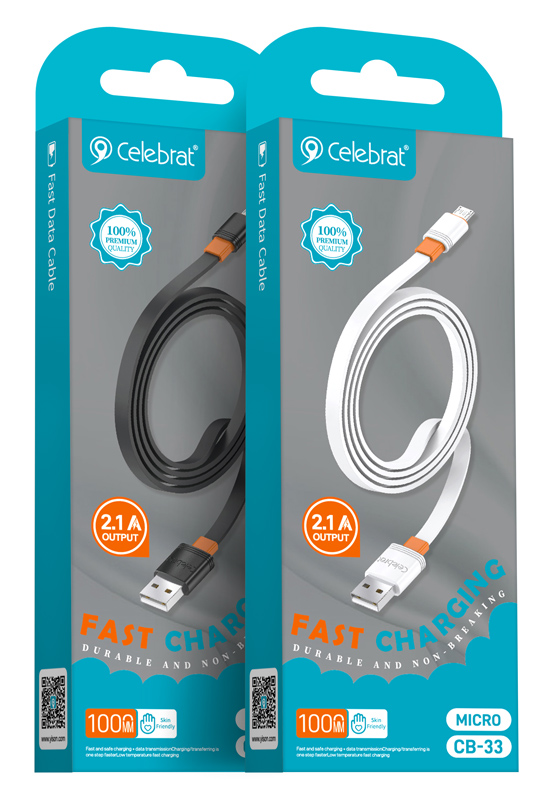 CELEBRAT καλώδιο micro USB σε USB CB-33M, flat, 2.1A, 1m, μαύρο
