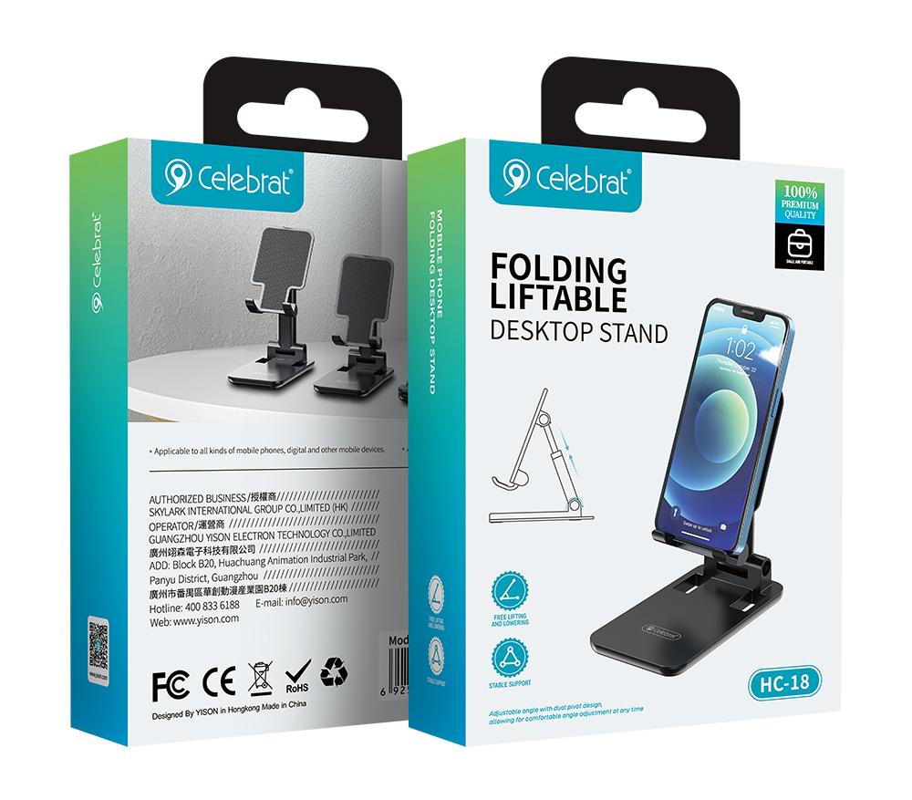 CELEBRAT βάση smartphone/tablet HC-18, foldable, μαύρη
