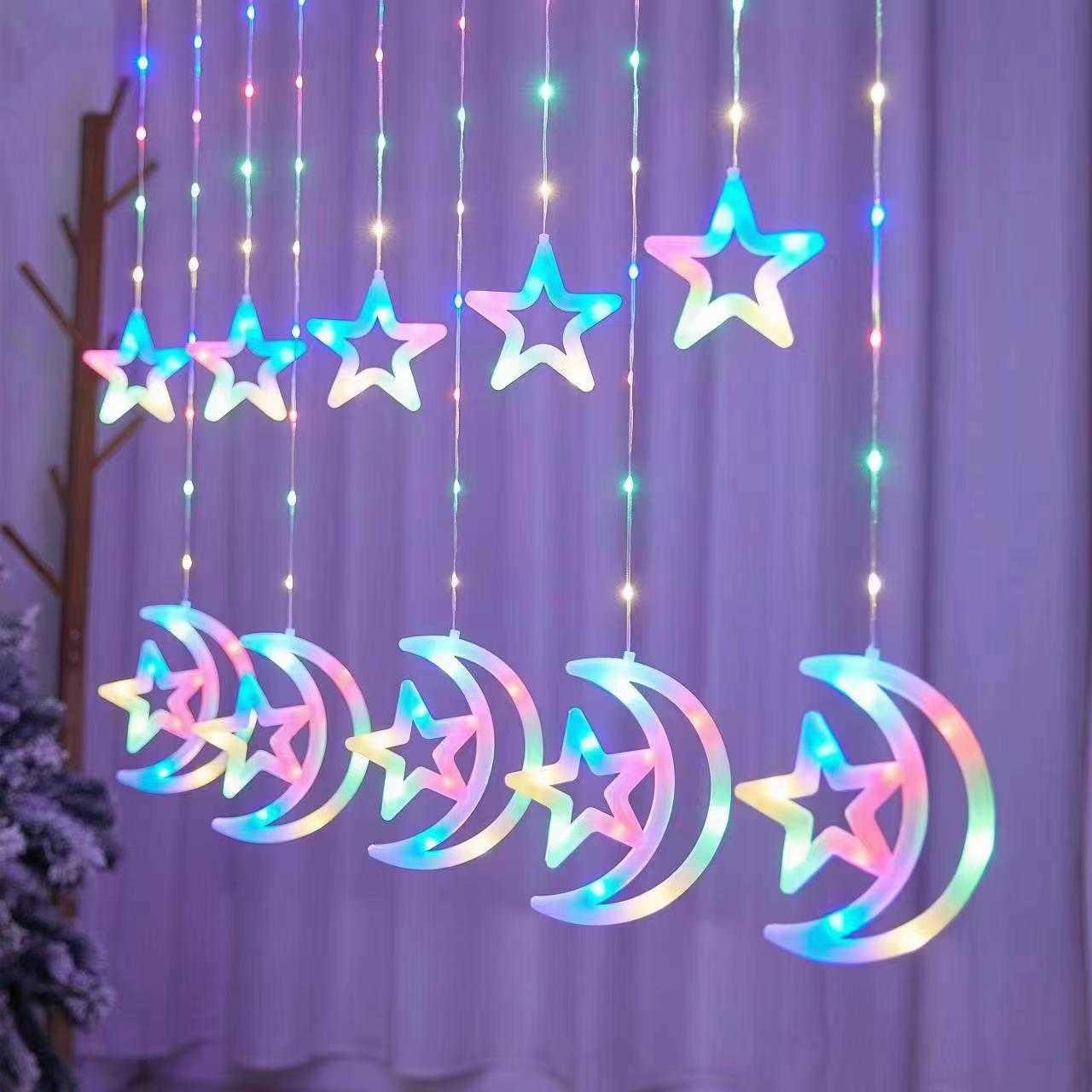 Χριστουγεννιάτικα διακοσμητικά φώτα LED τύπου κουρτίνα με φεγγάρια και αστεράκια.