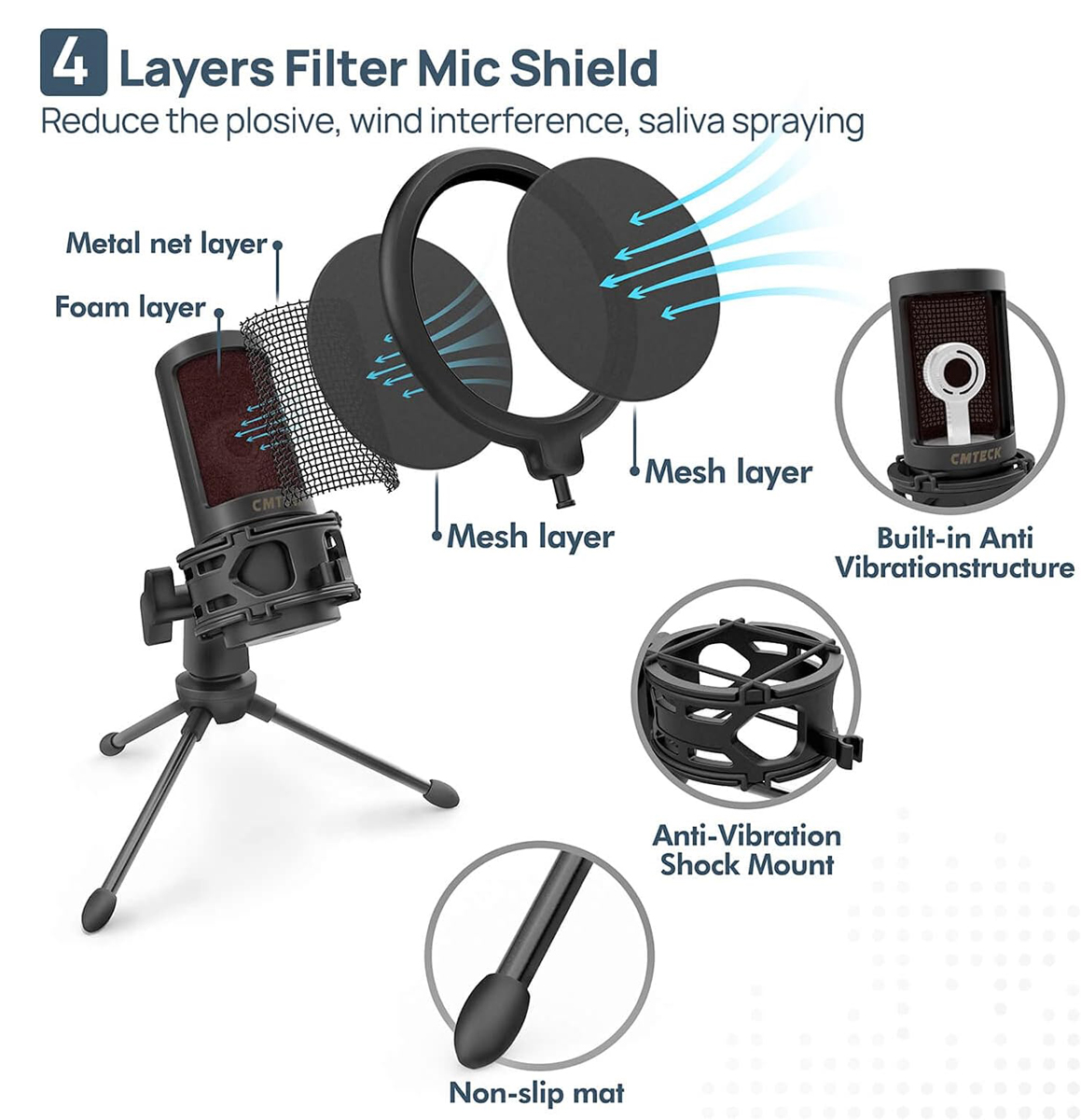 CMTECK επιτραπέζιο μικρόφωνο XM550 με pop φίλτρο, καρδιοειδές, USB, μαύρο