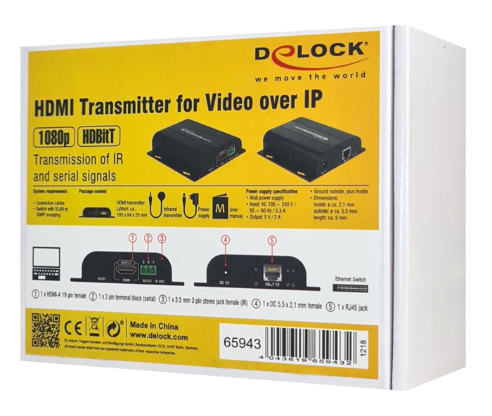 Αυτό το HDMI video extender σύστημα της Delock μπορεί να μεταφέρει σήματα βίντεο και ήχου μέσω ενός μόνο καλωδίου δικτύου. Η απόσταση μεταφοράς σημάτων βίντεο και ήχου μέσω του καλωδίου δικτύου μπορεί να φτάσει έως 100m.