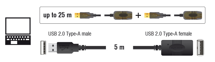 DELOCK καλώδιο USB 2.0 αρσενικό σε θηλυκό 82308, active, 5m, μαύρο