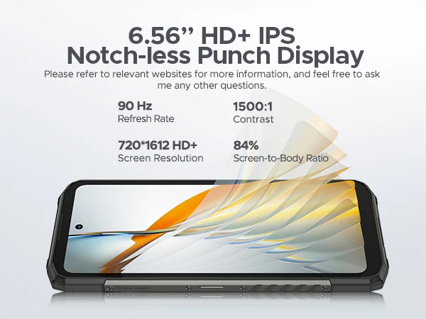 -Οθόνη: 6.56″ HD+ IPS Notch-less Punch Display, 1612x720p, 90Hz