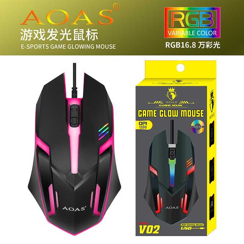 To ποντίκι Aoas V02 είναι ένα gaming ποντίκι σχεδιασμένο και για τα δύο χέρια, με οπτικό αισθητήρα και ανάλυση 2400 DPI. Διαθέτει 3 κουμπιά και φωτισμό RGB που μπορεί να πάρει διάφορες αποχρώσεις.