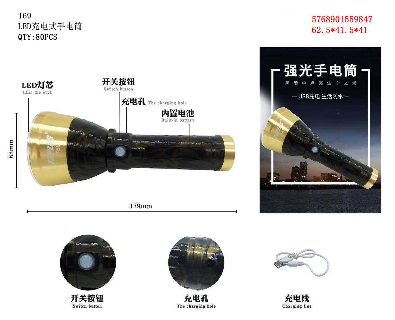 Επαναφορτιζόμενος φακός LED – T69 – 559847