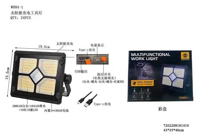Επαναφορτιζόμενος προβολέας εργασίας LED W844-1 με πτυσσόμενο σταντ στήριξης.