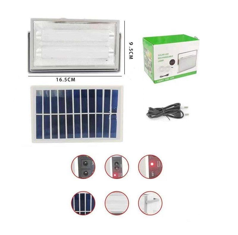 Επαναφορτιζόμενος προβολέας LED υψηλής ισχύος με ενσωματωμένο ηλιακό πάνελ στο πίσω μέρος του και εργονομική σχεδίαση για εύκολη μεταφορά παντού. Το σετ περιλαμβάνει έξτρα λάμπα led συνδεόμενη με καλώδιο στην κεντρική μονάδα.