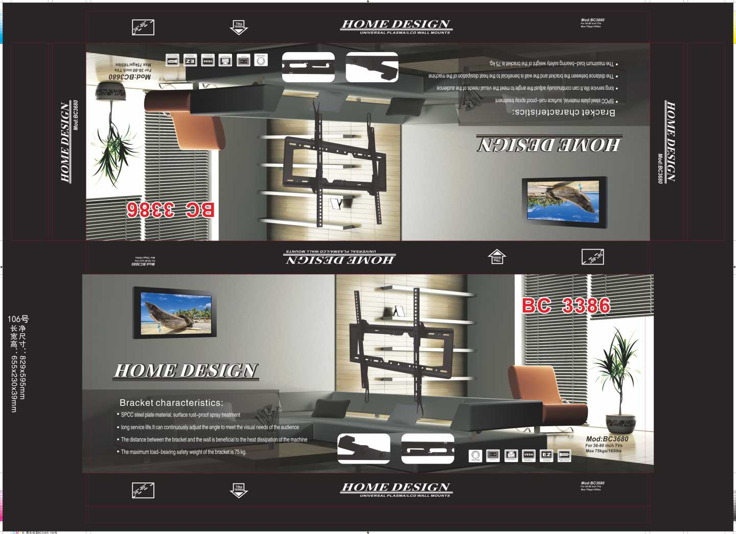 Επιτοίχια βάση τηλεόρασης για διάσταση 36-70'' – BC3386 – 567822