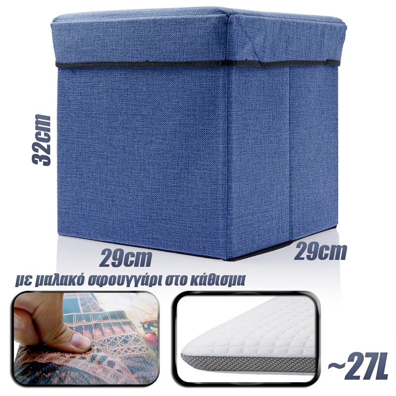 Έξυπνο Κουτί Αποθήκευσης & Σκαμπό Dark Blue