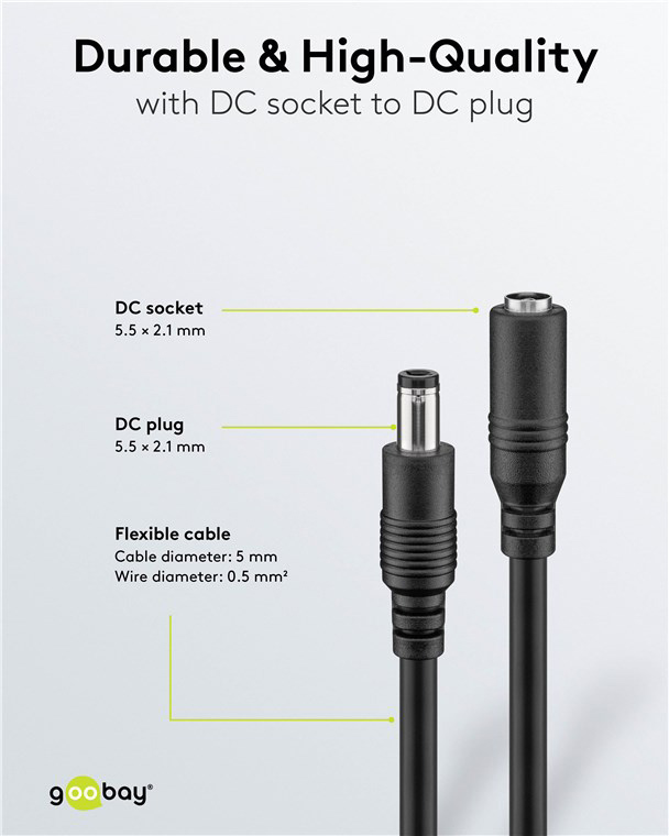 GOOBAY καλώδιο προέκτασης τροφοδοσίας 76635, 5.5×2.1mm, 1.5m, μαύρο