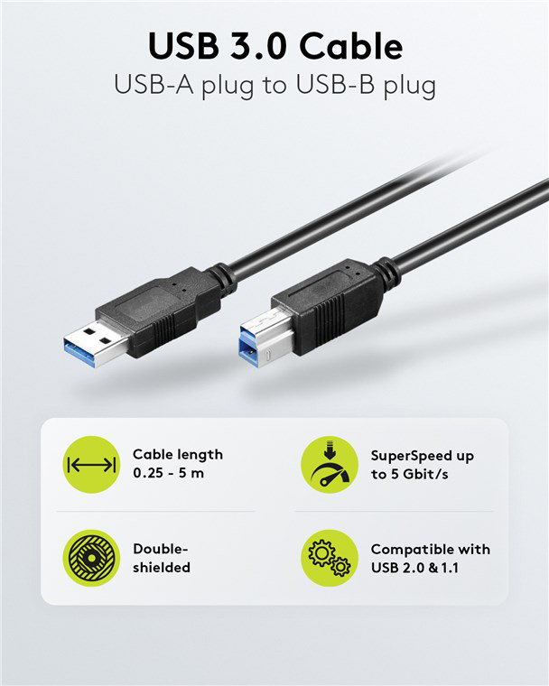 GOOBAY καλώδιο USB 3.0 σε USB Type B 95719, 1m, 5Gbps, μαύρο