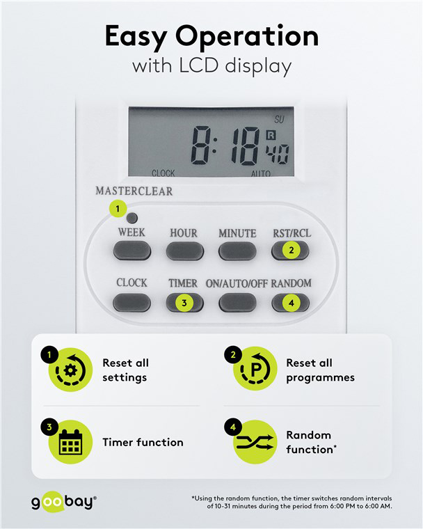 GOOBAY ψηφιακός χρονοδιακόπτης ρεύματος 51277, λευκός