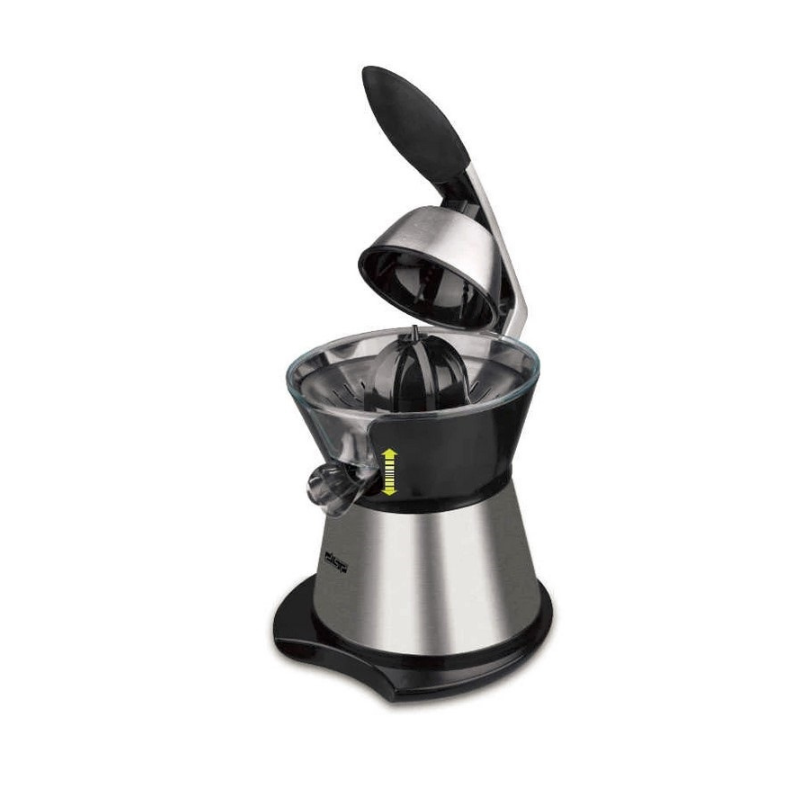 Ηλεκτρικός στίφτης της DSP με λαβή για εύκολη πιέση και βρυσάκι εξαγωγής του χυμού απευθείας στο ποτήρι σας. Υψηλής απόδοσης, πρακτικός και εύχρηστος για να έχετε καθημερινά γρήγορα και χωρίς κόπο τον αγαπημένο σας χυμό πορτοκαλιού, λεμονιού κα. Διαθέτει 2 κώνους στυψίματος διαφορετικού μεγέθους για μικρότερα και μεγαλύτερα φρούτα.