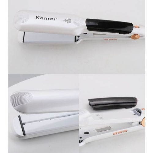 Ισιωτική μαλλιών Kemei με ατμό και κεραμικές πλάκες με τεχνολογία τουρμαλίνης που προστατεύει τα μαλλιά απ την θερμότητα και τη φθορά, για ένα λείο και λαμπερό αποτέλεσμα! Οι φαρδιές της πλάκες και η ταχύτατη θέρμανσή της σας βοηθούν να ολοκληρώσετε το χτένισμα σας σε ελάχιστο χρόνο.
