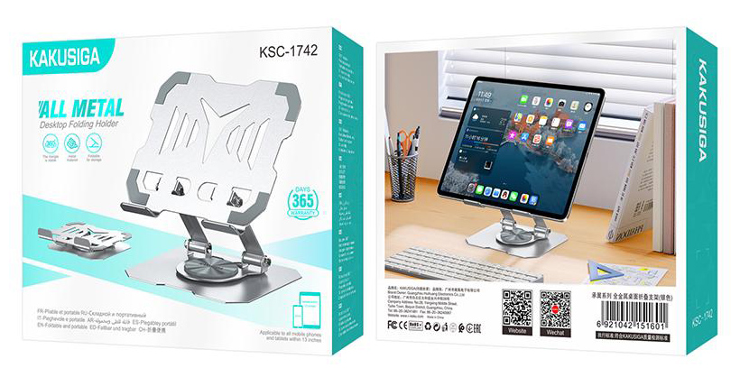 KAKUSIGA μεταλλική βάση για tablet KSC-1742, έως 13″, foldable, ασημί