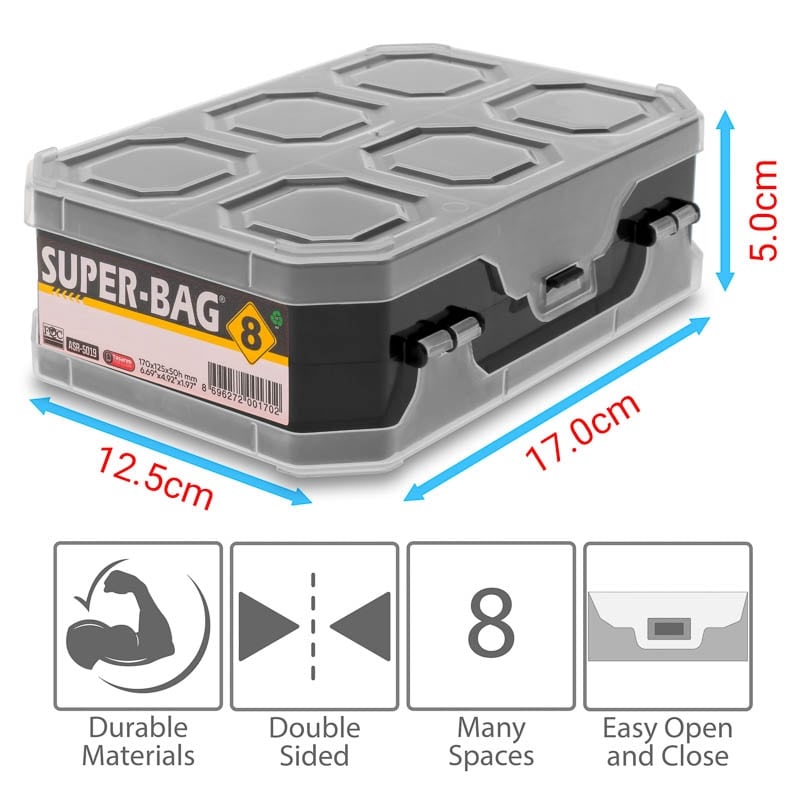 Πλαστικό κουτί οργάνωσης και αποθήκευσης, με 8 θέσεις.
