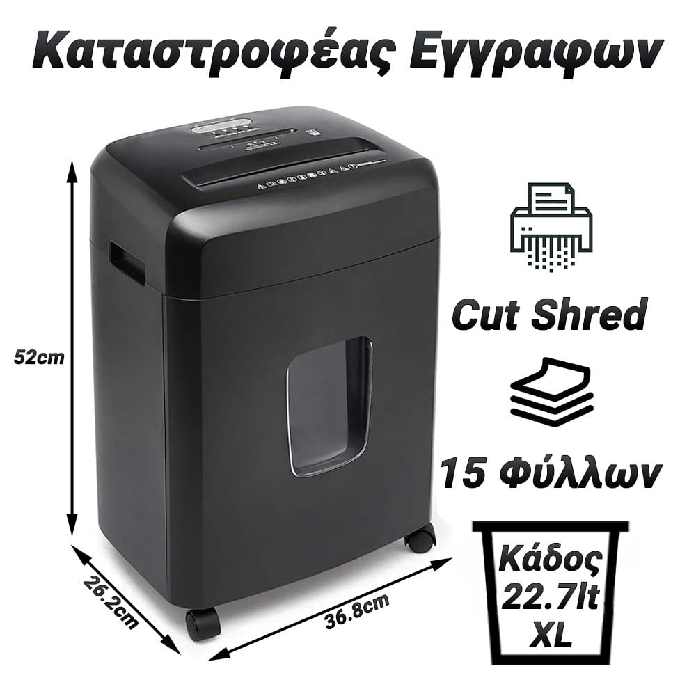 Καταστροφέας Εγγραφων 15 Φύλλων με Μεγάλο Κάδο 22.7lt