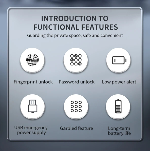 Ηλεκτρικό λουκέτο ασφαλείας της Kerong, ιδανικό για χρήση σε συρτάρια γραφείου, ντουλάπια, φοριαμούς και οποιοδήποτε άλλο μέρος χρειάζεται έξτρα προστασία. Εξοπλίζεται με πάνελ αναγνώρισης δαχτυλικού αποτυπώματος και πληκτρολόγιο 12 ψηφίων, με κωδικό 4 έως 8 ψηφίων. Διαθέτει 3 λειτουργίες public mode, private mode και limited public mode και τροφοδοτείται από 3x μπαταρίες AAA 1.5V (δεν συμπεριλαμβάνονται) ενώ διαθέτει και θύρα USB Micro για τροφοδότηση έκτακτης ανάγκης από εξωτερική πηγή ρεύματος.