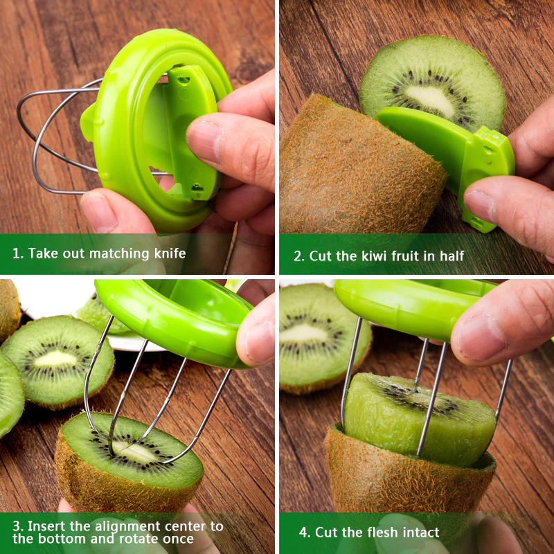 Στο εσωτερικό του διαθέτει αφαιρούμενο πλαστικό μαχαιράκι για το εύκολο κόψιμο της εξωτερικής φλούδας του ακτινίδιου.