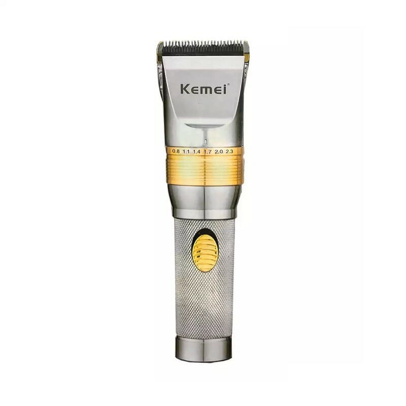 Επαναφορτιζόμενη κουρευτική και ξυριστική μηχανή της Kemei, με λεπίδα ακριβείας από ανοξείδωτο ατσάλι, κατάλληλη για κάθε είδους περιποίηση σε μαλλιά, γένια και σώμα.