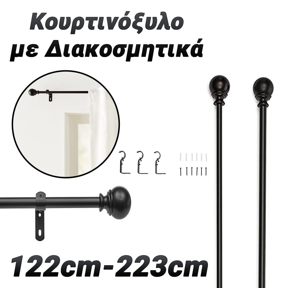 Κουρτινόξυλο 122-223cm με Διακοσμητικά Άκρα