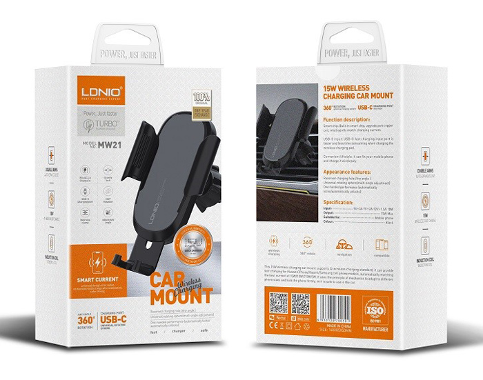 LDNIO ασύρματος φορτιστής & βάση αυτοκινήτου MW21, 15W, μαύρο