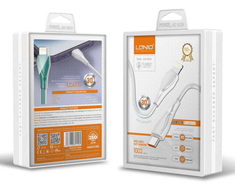LDNIO καλώδιο Lightning σε USB-C LC611I, 30W PD, 1m, πράσινο