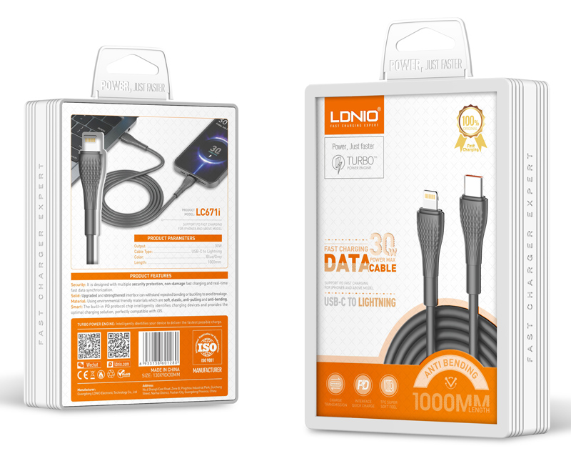 LDNIO καλώδιο Lightning σε USB-C LC671I, 30W PD, 1m, γκρι