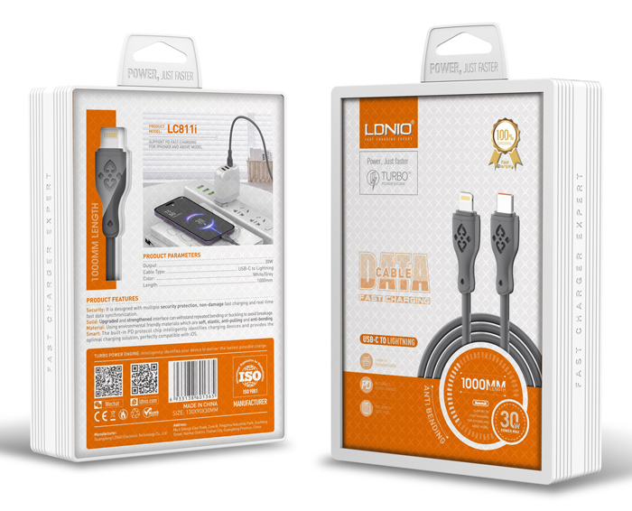 LDNIO καλώδιο Lightning σε USB-C LC811I, 30W PD, 1m, γκρι