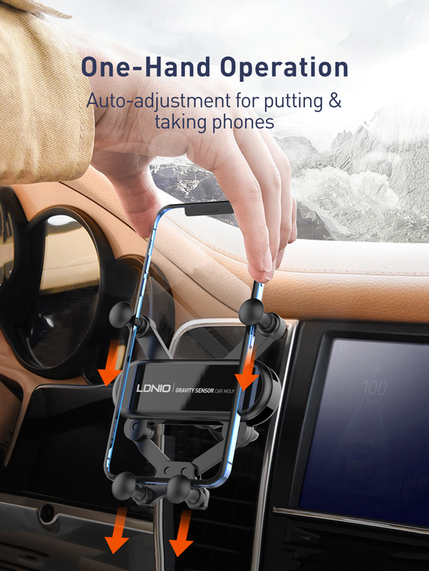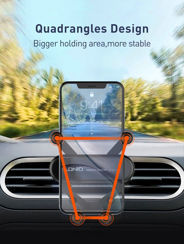 Συγκρατεί το smartphone σταθερό και ασφαλές με έξυπνο μηχανισμό συγκράτησης, ο οποίος ασφαλίζει το κινητό με το ίδιο του το βάρος της συσκευής, αποτρέποντας την πτώση του.