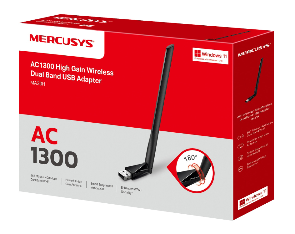 Ο ασύρματος USB αντάπτορας δικτύου MA30H της MERCUSYS σας επιτρέπει να συνδέσετε ένα σταθερό ή φορητό υπολογιστή, σε ασύρματο δίκτυο WiFi, μέσω ελεύθερης θύρας USB.