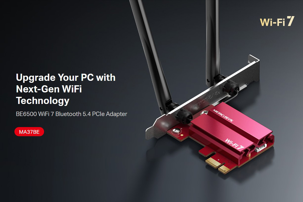 MERCUSYS κάρτα δικτύου WiFi 7 & Bluetooth MA37BE, 6500Mbps BE6500, PCIe, V1.0