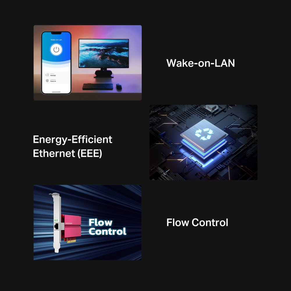 -Standards and Protocols: 802.3x Flow Control, 802.3az Power Saving, 802.3i 10BASE-T, 802.3u 100BASE-T, 802.3ab 1000BASE-T, 802.3bz 2.5GBASE-T and 5GBASE-T, 802.3an 10GBASE-T