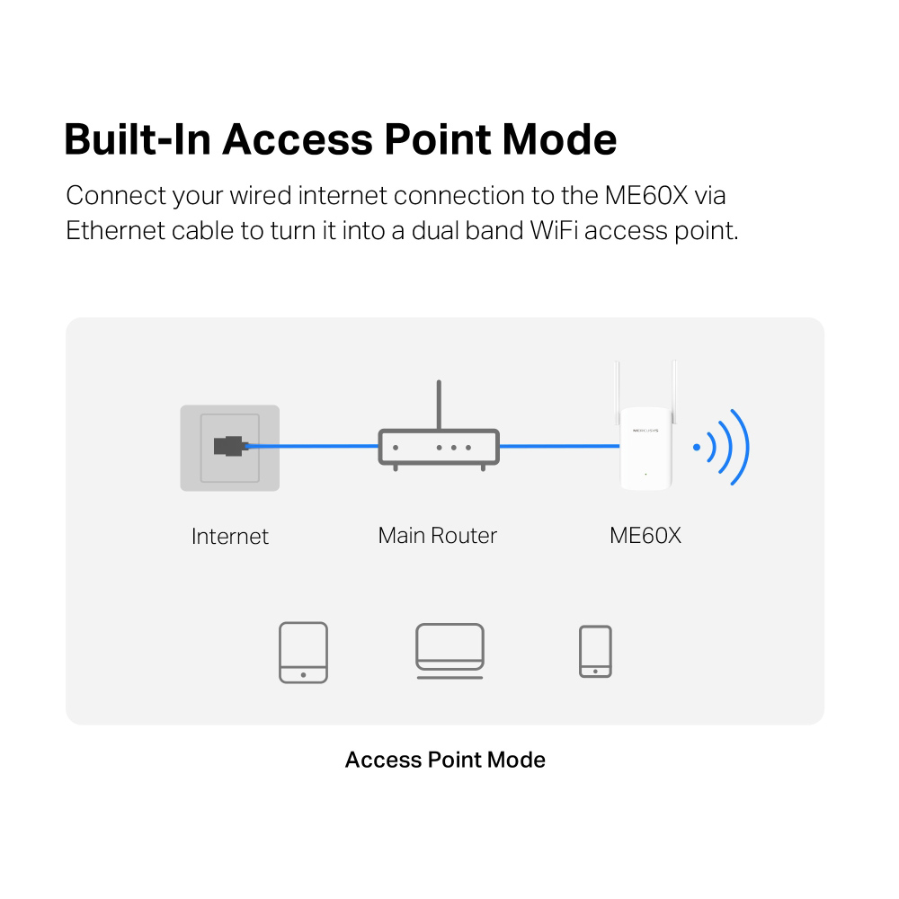 Οπλισμένο με τεχνολογία WiFi 6, το ME60X έχει σχεδιαστεί για να βελτιώσει στην κάλυψη, την ταχύτητα και τη συνολική χωρητικότητα στο δίκτυο σας.