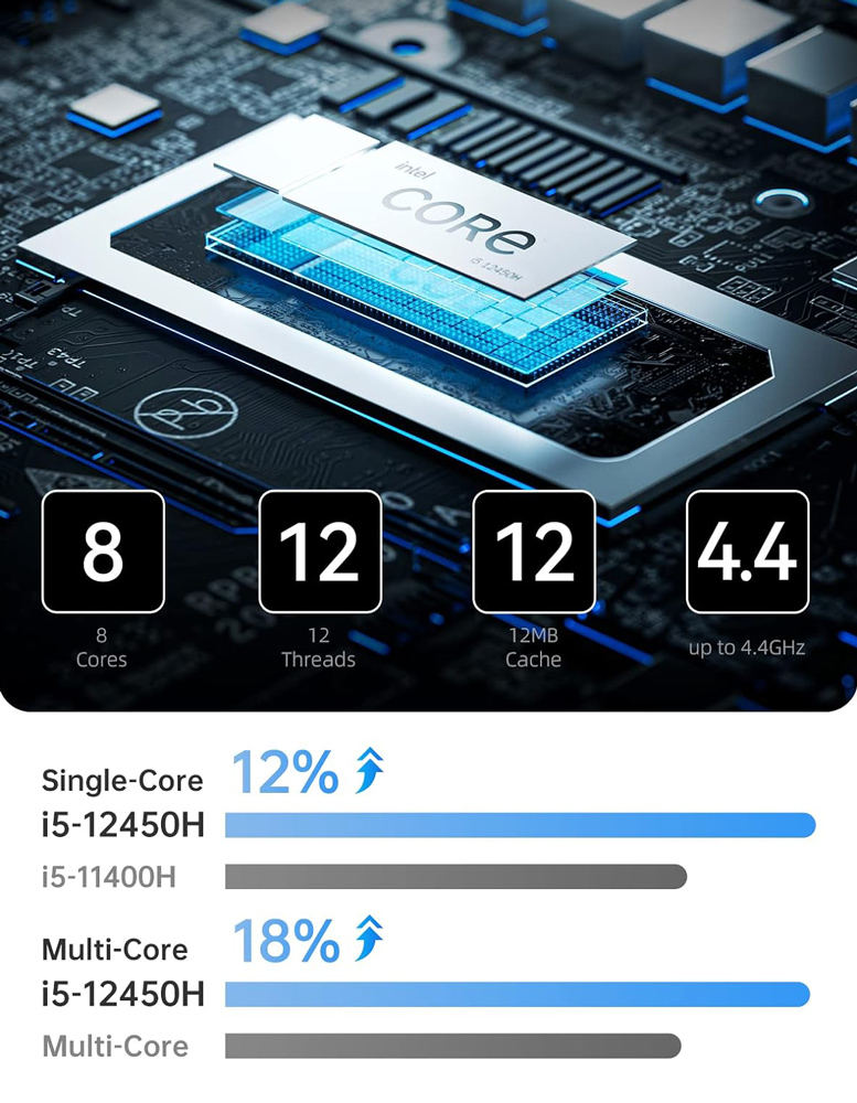 -Επεξεργαστής: Intel Core i5-12450H Processor, 8 Cores/12 Threads (12M Cache, up to 4.40 GHz)