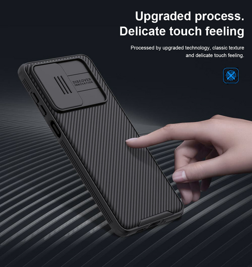 Η σειρά CamShield Pro της Nillkin χαρακτηρίζεται από την ενισχυμένη προστασία που προσφέρει το σκληρό υλικό κατασκευής της με την ανάγλυφη επιφάνεια αλλά και την έξτρα προστασία των καμερών και της ιδιωτικότητας σας, χάρη στο συρόμενο καπάκι της. Η επιφάνεια της είναι αντιολισθητική, έχει ενισχυμένα άκρα, δεν χαράσσεται και δεν κάνει δαχτυλιές.
