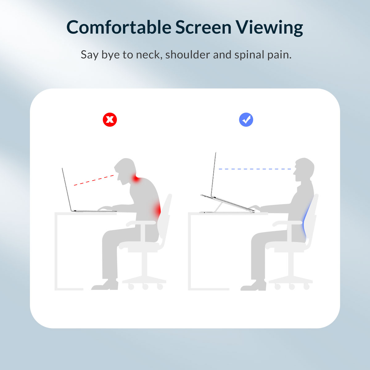 Διαθέτει 7 ρυθμιζόμενα επίπεδα για την ανύψωση της συσκευής σας, που επιτυγχάνουν την ιδανική γωνία θέασης, για πιο άνετη εργασία. Επιπλέον, το ανασήκωμα της συσκευής από το γραφείο βοηθάει στην καλύτερη απομάκρυνση του θερμού αέρα που παράγεται κατά την χρήση.