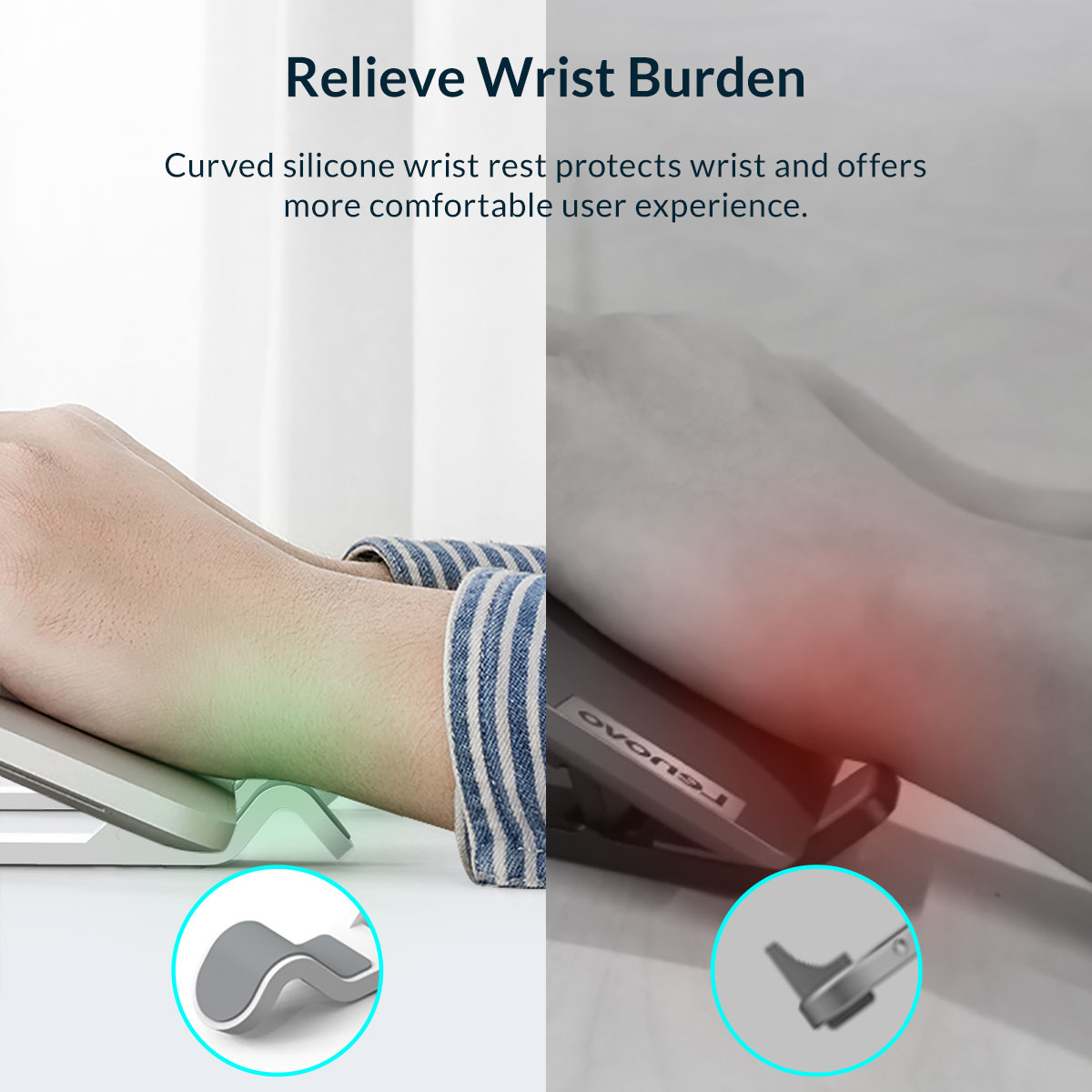 Η επιφάνεια τοποθέτησης και έδρασης της βάσης διαθέτει αντιολισθητικά pads σιλικόνης ώστε να μην γλιστράει και να μην προκαλεί γρατζουνιές στην συσκευή και το γραφείο σας.