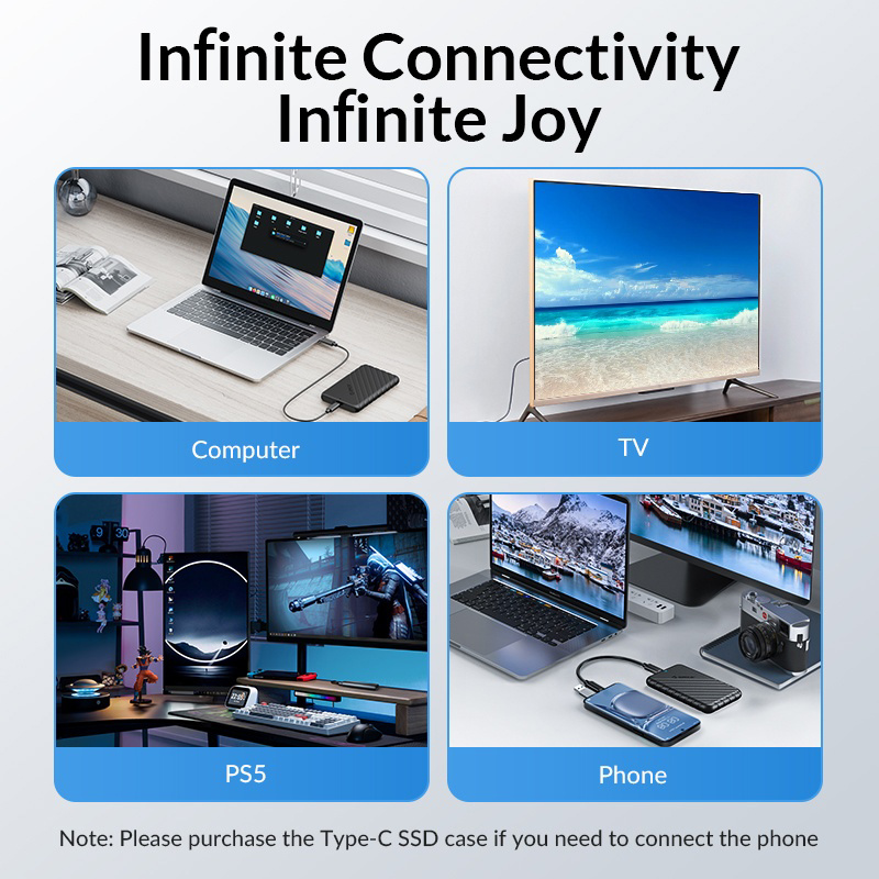 Η θήκη της ORICO επιτρέπει την σύνδεση ενός 2.5″ SATA HDD ή SSD με έναν επιτραπέζιο ή φορητό υπολογιστή μέσω θύρας USB-C.