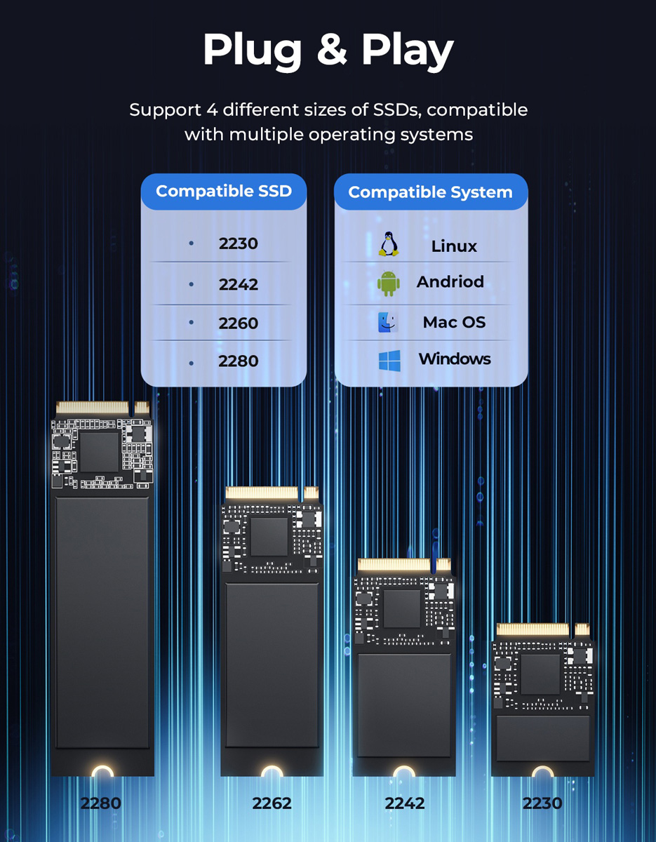Η θήκη της ORICO επιτρέπει την σύνδεση M.2 NVME ή NGFF SSD με έναν επιτραπέζιο ή φορητό υπολογιστή μέσω θύρας USB-C ή USB.
