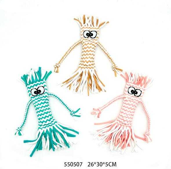 Παιχνίδι σκύλου από σχοινί, από ελαστικό ανθεκτικό, μη τοξικό πολυεστέρα, ιδανικό για παιχνίδια τραβήγματος και ανάκτησης ενώ παράλληλα βοηθά στην υγιεινή στόματος του σκύλου σας καθώς καθαρίζει ήπια και απασχολεί τα δόντια του. Διαστάσεις: 30x5cm.