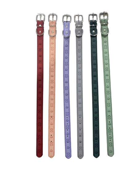 Περιλαίμιο-Κολάρο σκύλου με σχέδια και κούμπωμα ζώνης. Διαθέτει ρυθμιζόμενο μήκος έως 46cm και πλάτος 2cm. Διαθέτει επίσης κρικάκι ώστε να κρεμάσετε την ταυτότητα του κατοικιδίου σας ή αξεσουάρ. Διαθέσιμο σε διάφορα χρώματα – Σημειώστε το χρώμα προτίμησής σας στις σημειώσεις παραγγελίας – Αποστολή κατόπιν διαθεσιμότητας.