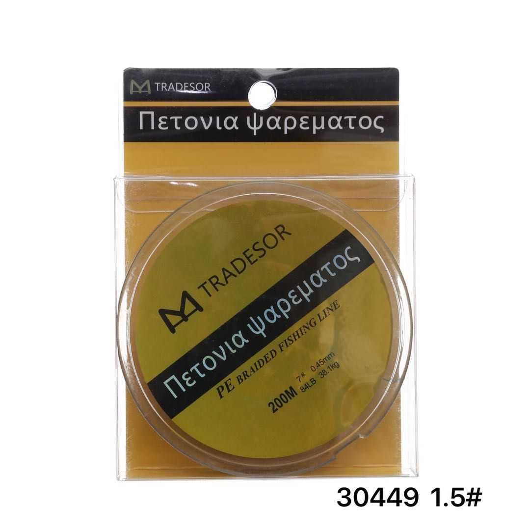 Η Tradesor, βάσει της υψηλής τεχνογνωσίας και του τεχνολογικού εξοπλισμού που χρησιμοποιεί, έχει κατασκευάσει μια σειρά από πετονιές ψαρέματος υψηλής ποιότητας και αντοχής. Ο τρόπος με τον οποίο έχουν σχεδιαστεί εξασφαλίζει στην πετονιά μηδενική μνήμη, ταχεία βύθιση και συνάμα την κάνει εξαιρετικά μαλακή παρά την μεγάλη αντοχή της. Είναι 100% αόρατη με μεγάλες αντοχές στον κόμπο και στα γδαρσίματα. Μέγεθος: 200m/#1.5