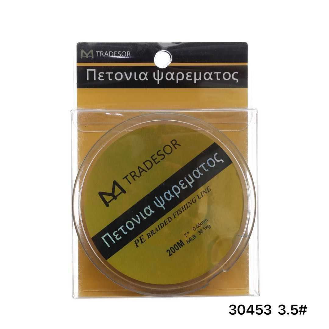 Η Tradesor, βάσει της υψηλής τεχνογνωσίας και του τεχνολογικού εξοπλισμού που χρησιμοποιεί, έχει κατασκευάσει μια σειρά από πετονιές ψαρέματος υψηλής ποιότητας και αντοχής. Ο τρόπος με τον οποίο έχουν σχεδιαστεί εξασφαλίζει στην πετονιά μηδενική μνήμη, ταχεία βύθιση και συνάμα την κάνει εξαιρετικά μαλακή παρά την μεγάλη αντοχή της. Είναι 100% αόρατη με μεγάλες αντοχές στον κόμπο και στα γδαρσίματα. Μέγεθος: 200m/#3.5