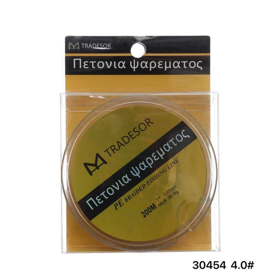 Η Tradesor, βάσει της υψηλής τεχνογνωσίας και του τεχνολογικού εξοπλισμού που χρησιμοποιεί, έχει κατασκευάσει μια σειρά από πετονιές ψαρέματος υψηλής ποιότητας και αντοχής. Ο τρόπος με τον οποίο έχουν σχεδιαστεί εξασφαλίζει στην πετονιά μηδενική μνήμη, ταχεία βύθιση και συνάμα την κάνει εξαιρετικά μαλακή παρά την μεγάλη αντοχή της. Είναι 100% αόρατη με μεγάλες αντοχές στον κόμπο και στα γδαρσίματα. Μέγεθος: 200m/#4.0
