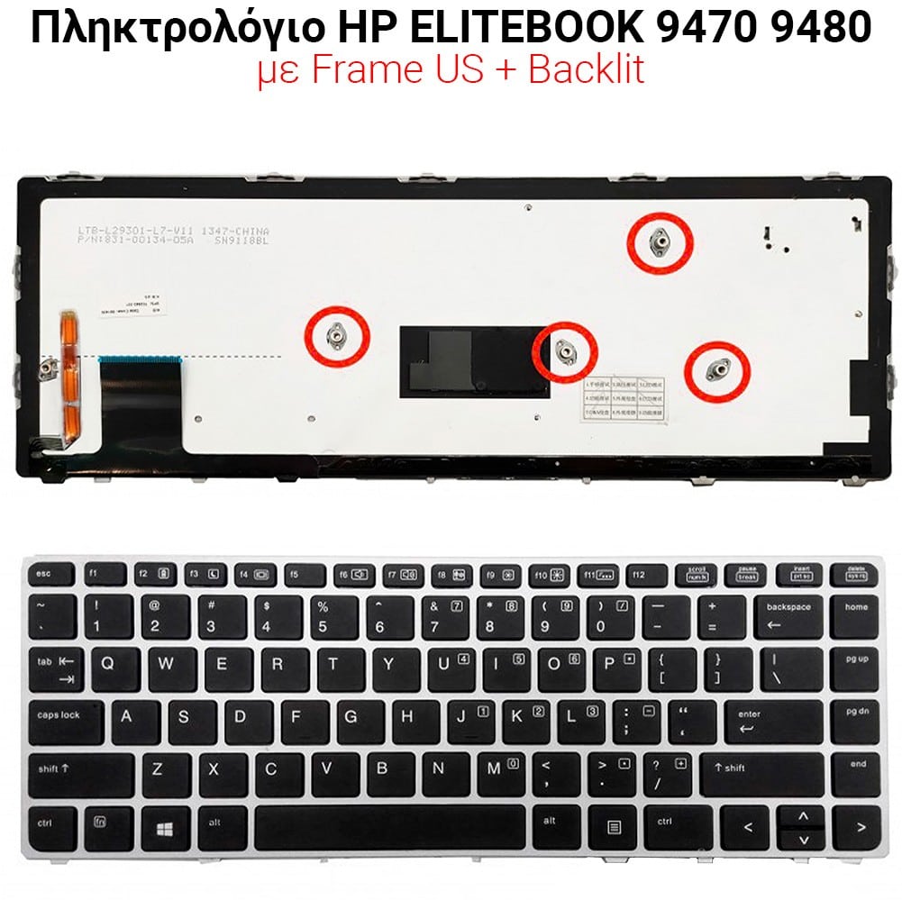 Πληκτρολόγιο HP ELITEBOOK 9470 9480 WITH FRAME US + BACKLIT